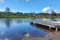 Рядом с домом на берегу находятся беседка с мангалом, пирс с лестницей для купания и причалом для лодок и баня.